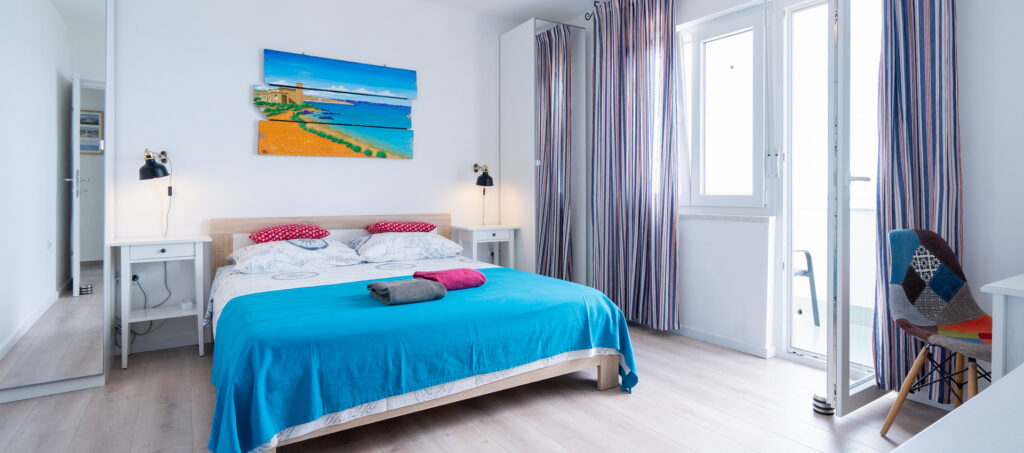 Das Apartment Rosso oder “Rot“ ist auf dem 1. Stock des Hauses. Ein schönes und bequemes Apartment mit geräumiger Terasse und Zimmer ausgestattet mit modernstem Möbel. Die dominierend, rote Farbe wiederspiegelt den wunderschönen Blick auf den Sonnenuntergang.